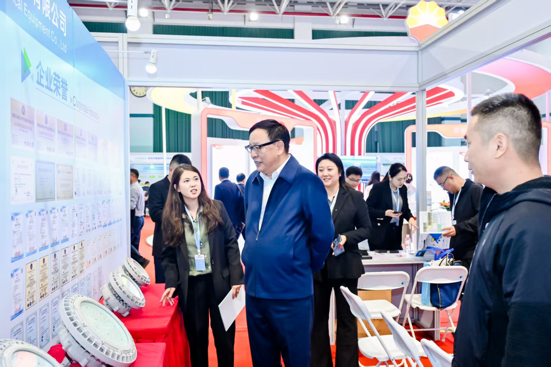 本報(bào)發(fā)自第五屆中國(guó)石油健康、安全與環(huán)保(HSE)技術(shù)交流大會(huì)現(xiàn)場(chǎng)訊 今日,在展會(huì)熱烈進(jìn)行期間,中國(guó)石油學(xué)會(huì)副理事長(zhǎng)兼秘書長(zhǎng)、我國(guó)石油化工領(lǐng)域權(quán)威專家李俊軍親臨秦皇島暢合電氣設(shè)備有限公司展臺(tái)觀摩指導(dǎo),對(duì)該公司展出的HBCH系列防爆燈具及工業(yè)電氣解決方案給予高度評(píng)價(jià)。